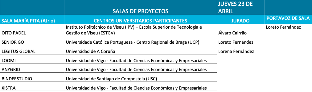 En la sala de Proyecto Empresarial, se clasificarán dos proyectos portugueses y dos españoles.